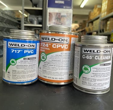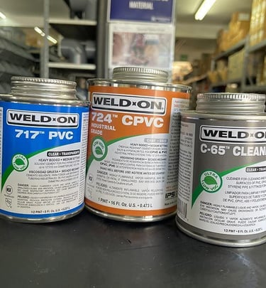 Pegamentos para tubos de PVC, soldadura de cobre, lijas, empaques y todo lo necesario para completar tu proyecto.